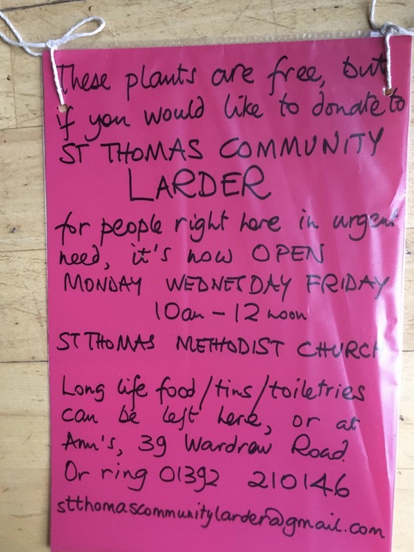Passers-by were thrilled by the plants and responded equally generously to Jenny's request for donations to the Community Larder. By the end of the morning, all the plants were in their new homes and Jenny had two big bags of goodies for the Larder and some cash donations too.